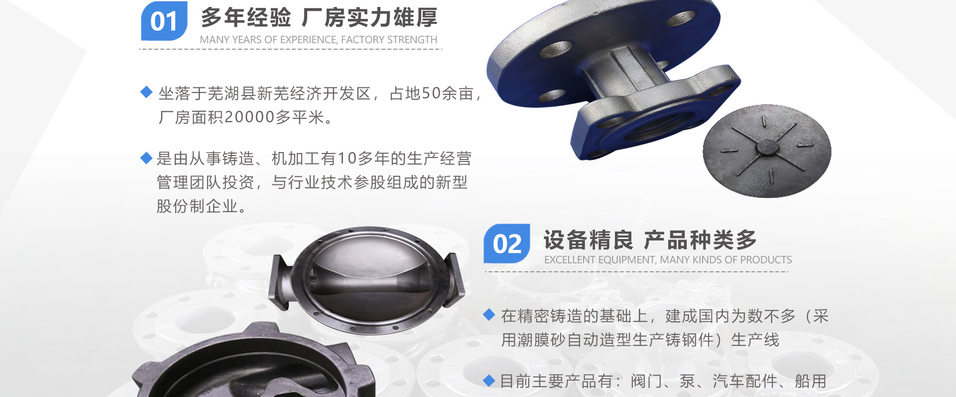 安徽偉工機械科技有限公司,坐落于安徽蕪湖新蕪經(jīng)濟開發(fā)區(qū),是一家専業(yè)從事鑄造產(chǎn)品設計、研發(fā)、生產(chǎn)、銷售于一體的企業(yè),公司為客戶的產(chǎn)品提供多樣的技術支持與設計,公司主要鑄造技術有潮模砂鑄造、硅溶膠精鑄工藝。主要產(chǎn)品有:不銹鋼閥門配件、泵閥配件、汽車配件、工業(yè)管道配件、工程機械配件、汽車配件等。材質為:低合金鋼、304、316、316L、鉻鉬鋼、哈氏合金、碳鋼、雙相鋼等。公司已先后通過ISO9001和TS16949等多種體系審核,以完備的管理手段和齊全的檢測設備滿足客戶需求,進的設備,専業(yè)的技術,嚴謹?shù)墓芾恚€(wěn)定的質量。服務客戶,鑄造未來,偉工誠摯的歡迎新老客戶共同商洽合作